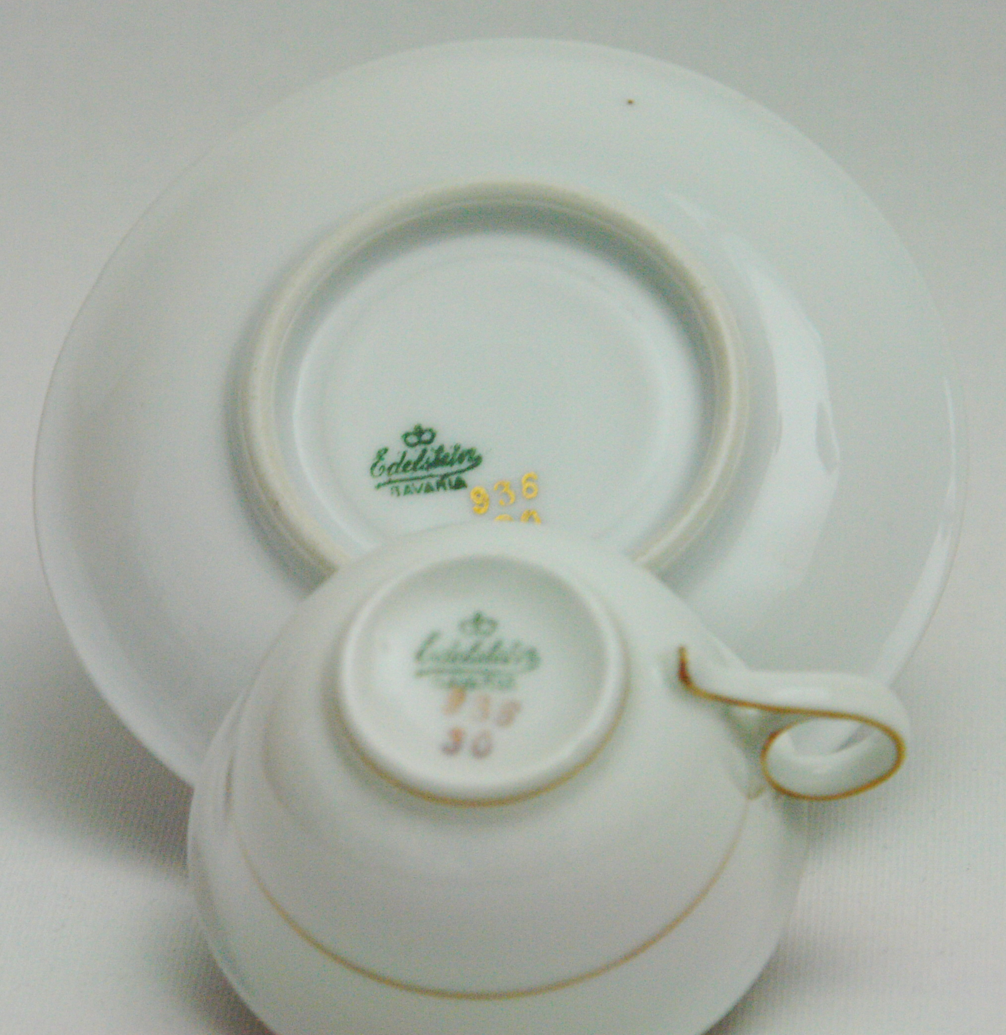 Dekor: Edelstein Bavaria Porzellan aus Küps, hauchdünn, Mokka- / Espressotasse mit Untertasse mit blauem Kobaltrand und Goldverzierung,