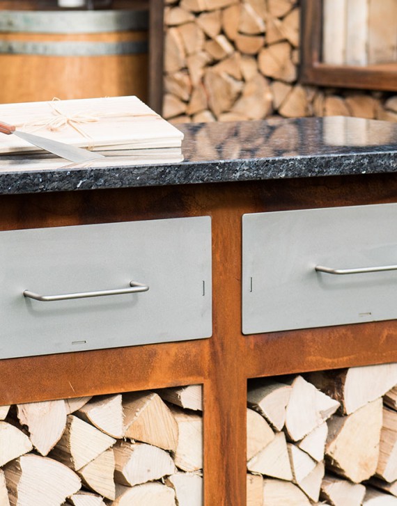 Unsere exklusivste Variante bietet alles, was das Outdoor-Küchenherz begehrt: Zwei Einschübe, genug Stauraum, eine Granitarbeitsplatte und die 100cm Kochplatte. Für mobile Caterings gibt’s den F4 Exclusive auf Rollen.