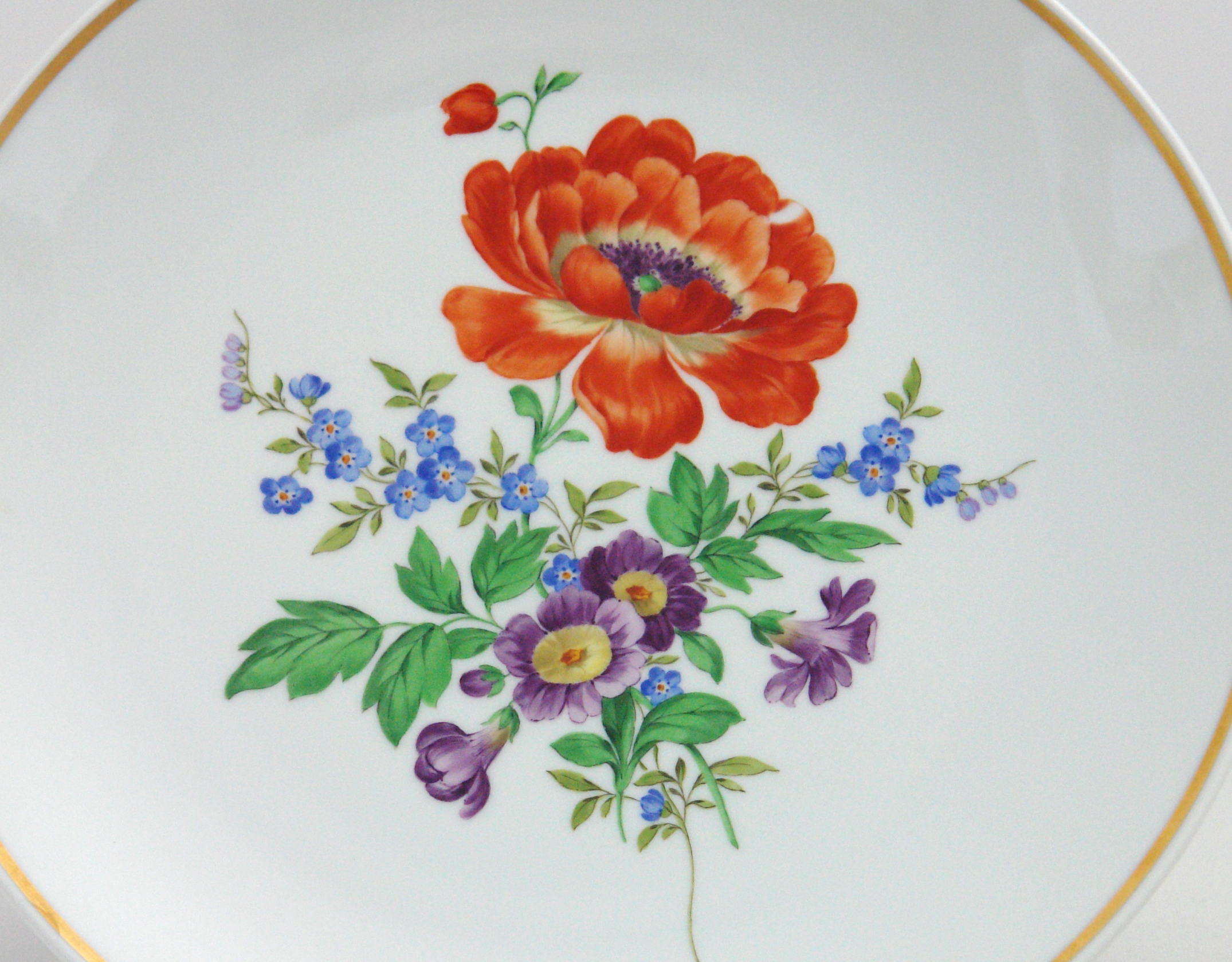 Meissen Wandteller Blumenmalerei 1.Wahl, Gold