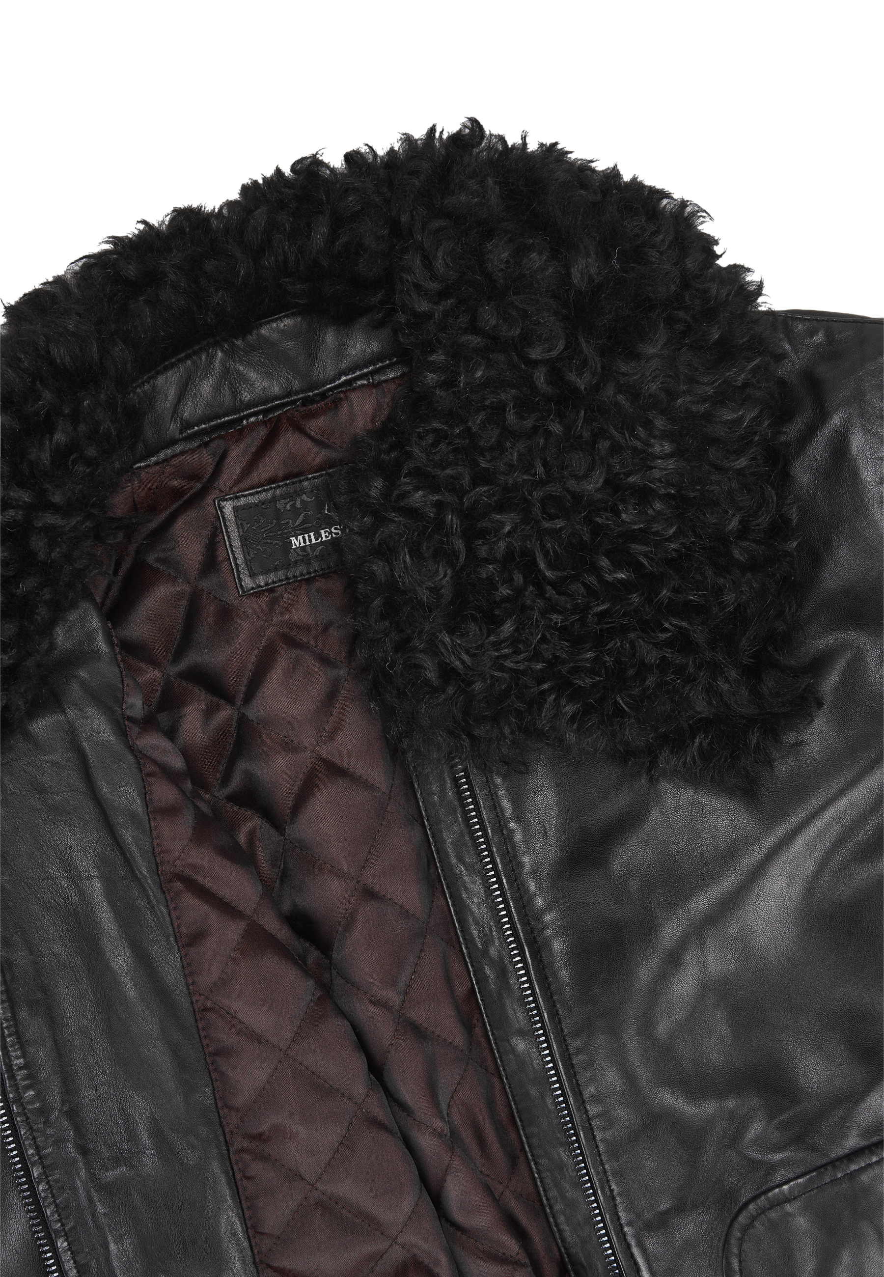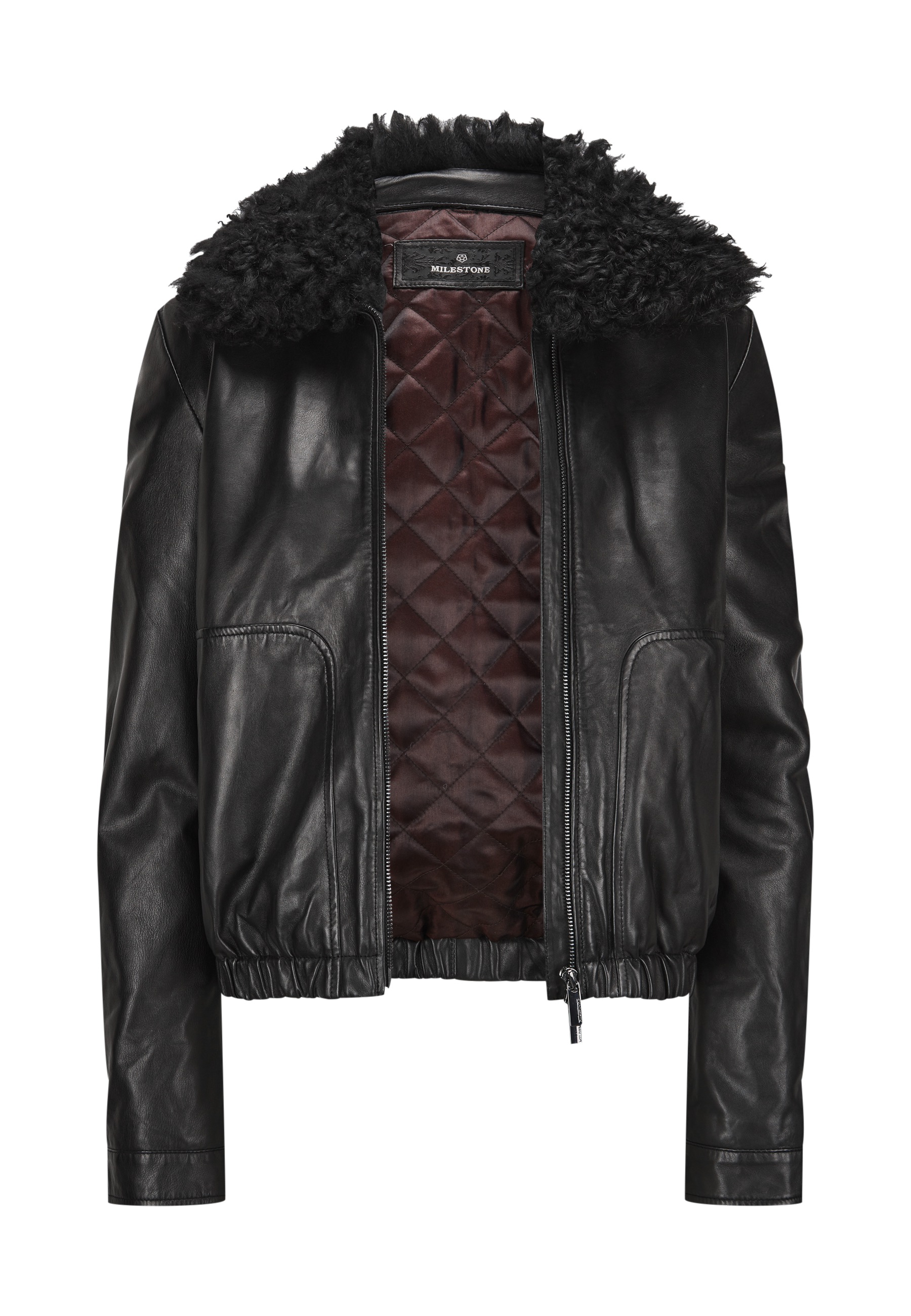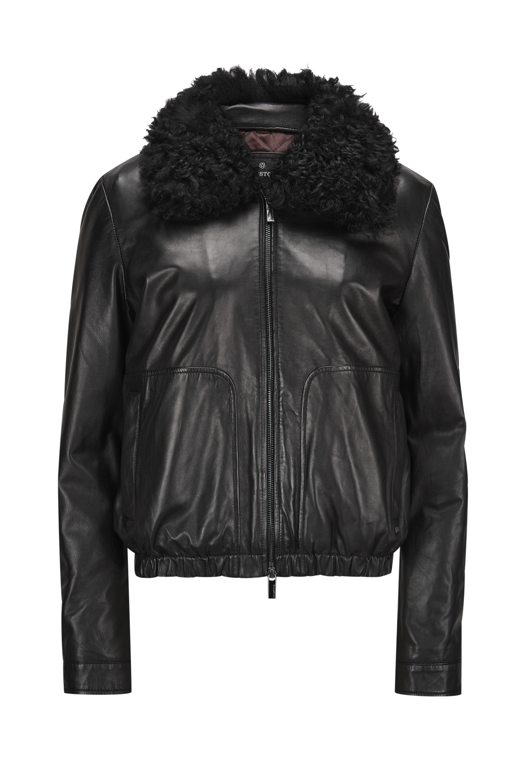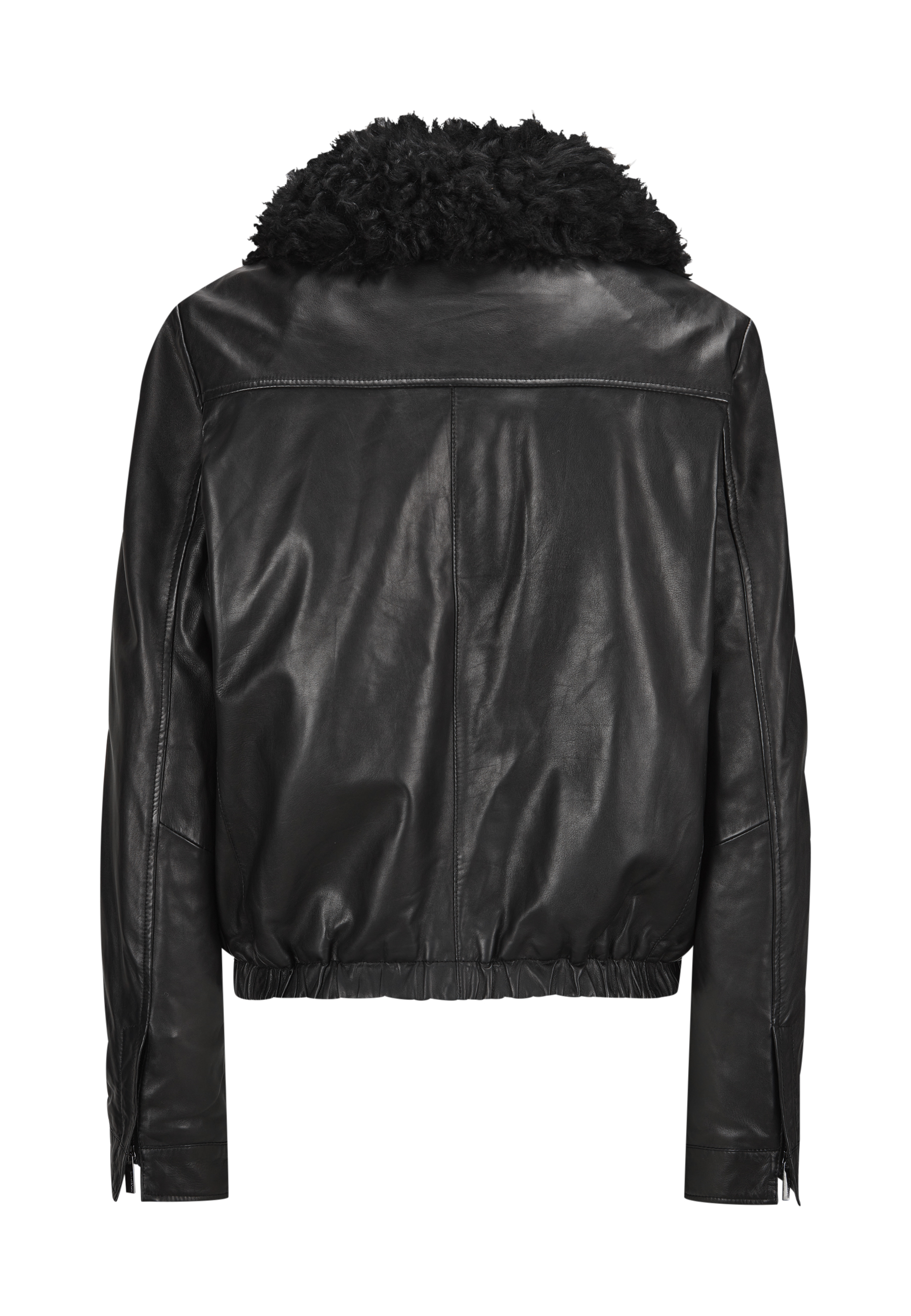 Schwarzer Da.-Lederblouson mit abknöpfbaren Kragen