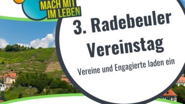 Dann kommen Sie zum dritten Radebeuler Vereinstag am Samstag, den 17.08.24. Hier stellen sich Vereine aus unterschiedlichen Bereichen vor, es gibt ein Kultur-Programm und auch für Speis und Trank ist gesorgt.