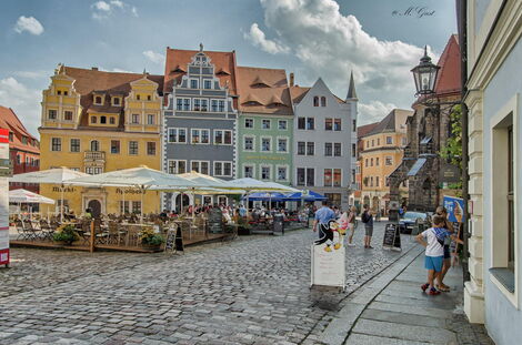 Das nächste Motiv unserer Bilderserie zeigt - passend zu unserer Eröffnungsveranstaltung - den schönen Meißner Markt mit vielerlei Geschäften und Restaurants.