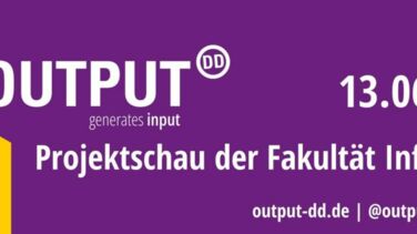 Einmal im Jahr werden Ergebnisse aus Lehre und Forschung von Studierenden und Mitarbeiter*innen der breiten Öffentlichkeit präsentiert. Die Besucher*innen erwarten Installationen, Workshops, Vorträge, Präsentationen und Ausstellungen zum Entdecken, Erleben und Erforschen. Daneben bietet OUTPUT.DD die Möglichkeit, mit ansässigen Firmen über spannende Forschungsfragen ins Gespräch zu kommen. Lassen Sie sich vom breit gefächerten Spektrum der Informatik begeistern!